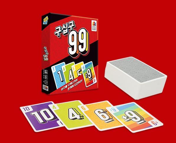 구십구(99)는 2명에서 최대 10명까지 함께 즐길 수 있는 파티형 카드게임입니다. 숫자 계산과 전략이 결합한 구십구 보드게임은 단 5분만에 룰을 이해하고 바로 플레이가 가능할 정도로 간단하지만, 긴장감과 몰입도는 상당히 높습니다. 특히 숫자 99를 넘지 않도록 조심하며 카드를 내야 하기 때문에 빠른 판단력과 순발력이 요구되는 게임입니다.